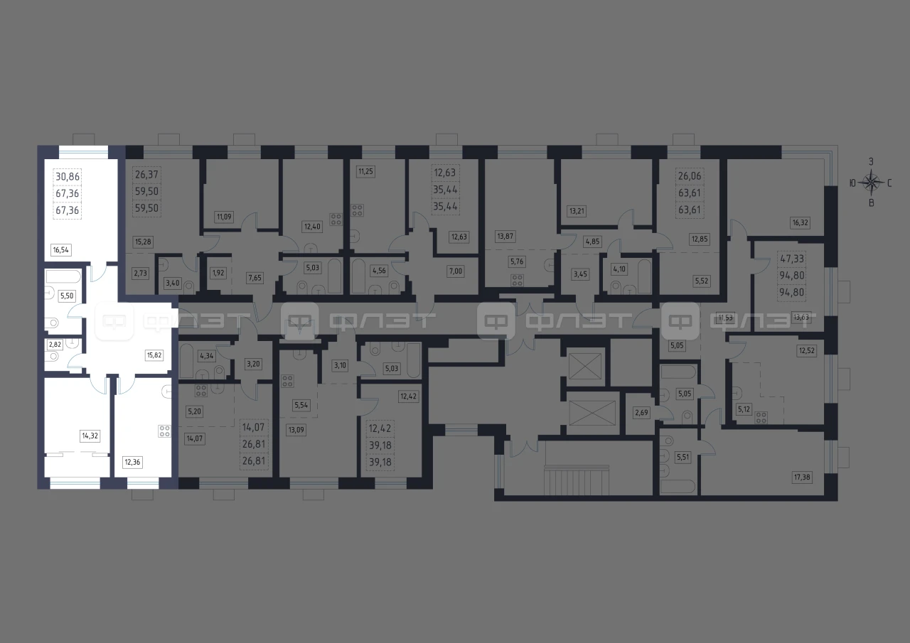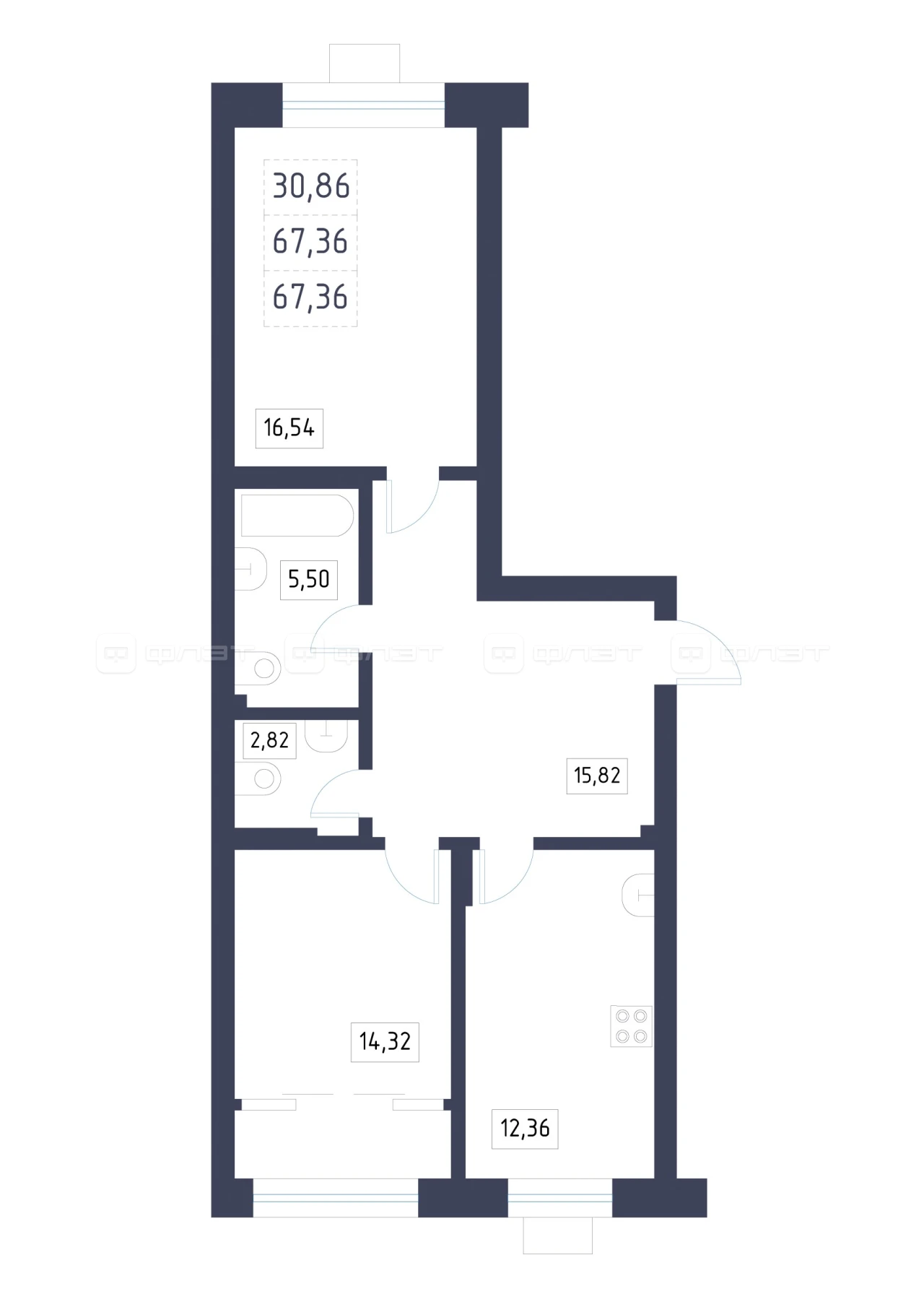 - 67.36/30.86/12.36 м²