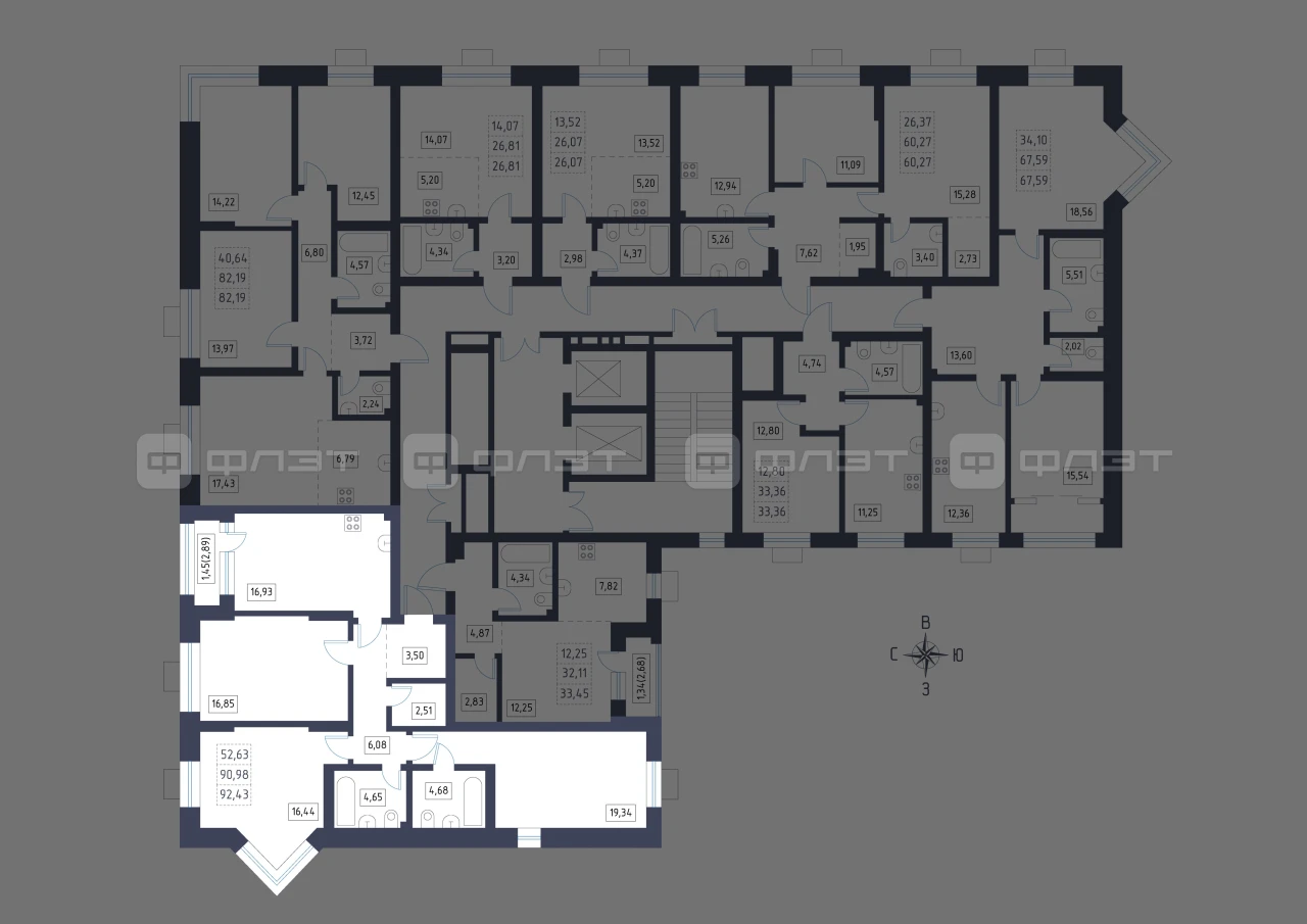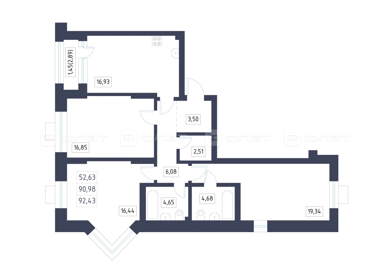 - 92.43/52.63/16.93 м²