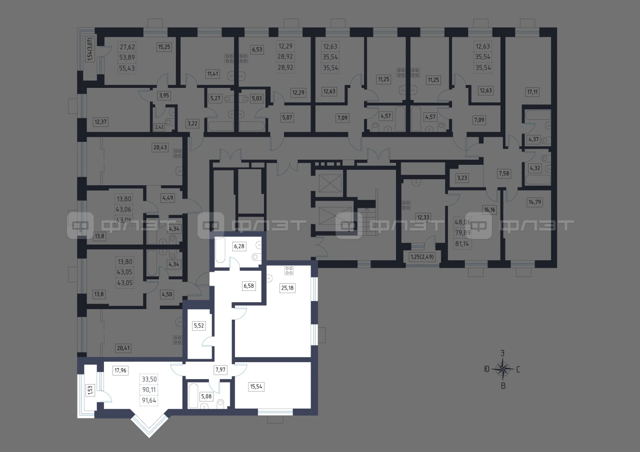 - 91.64/33.5/25.18 м²