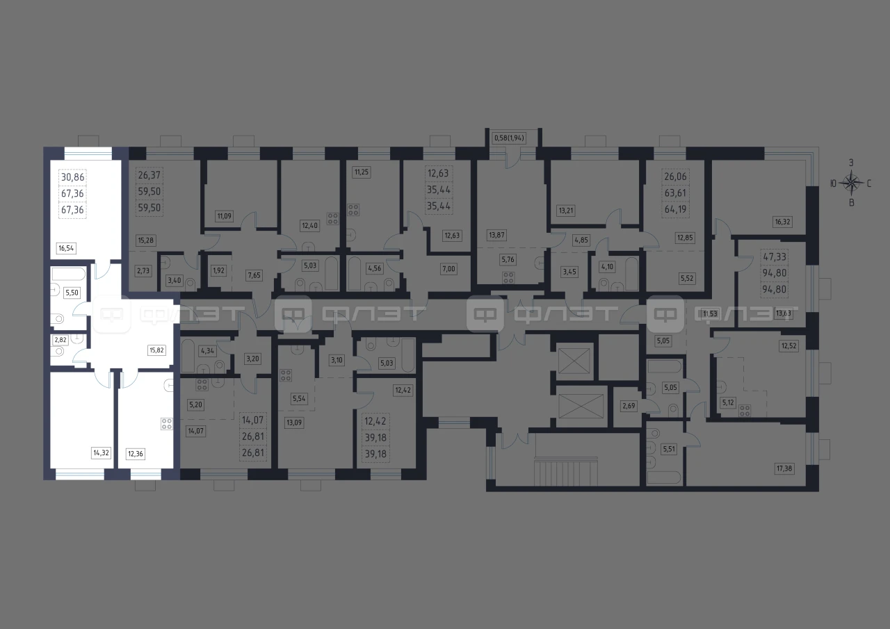 - 67.36/30.86/12.36 м²