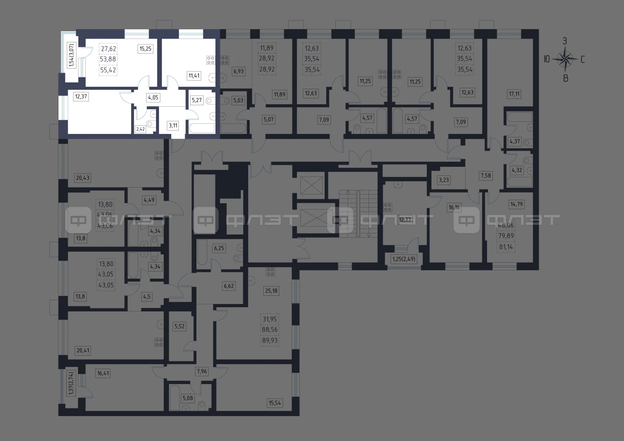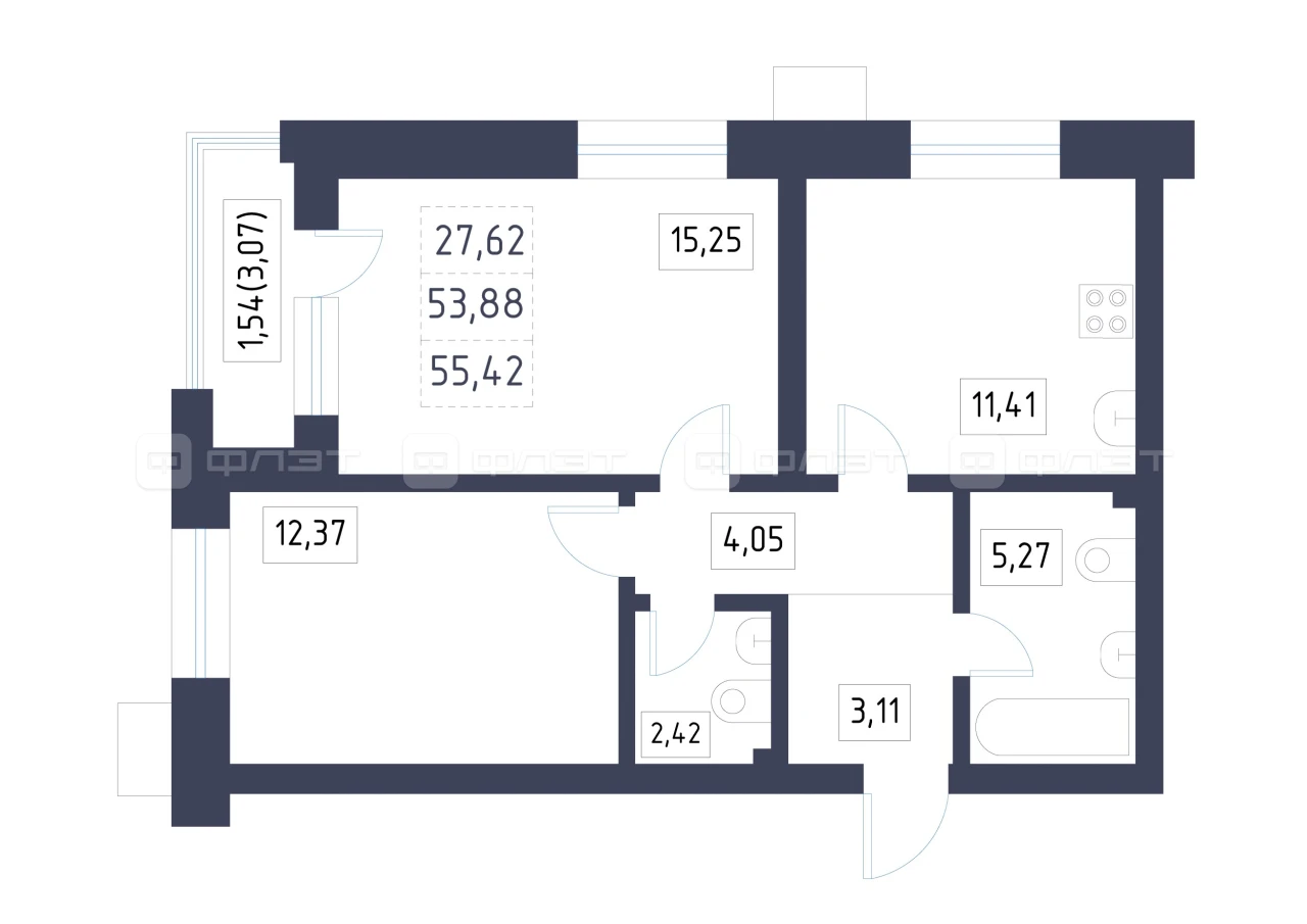 - 55.42/27.62/11.41 м²